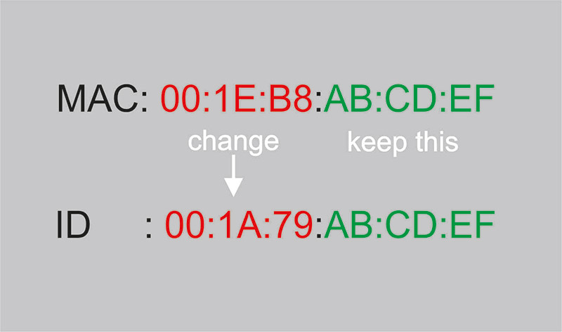 MAC: 00:1E:B8:XX:XX:XXΒ βΒID: 00:1A:79:XX:XX:XX