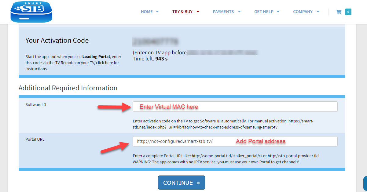 Once activated, add your IPTV provider’s portal address: