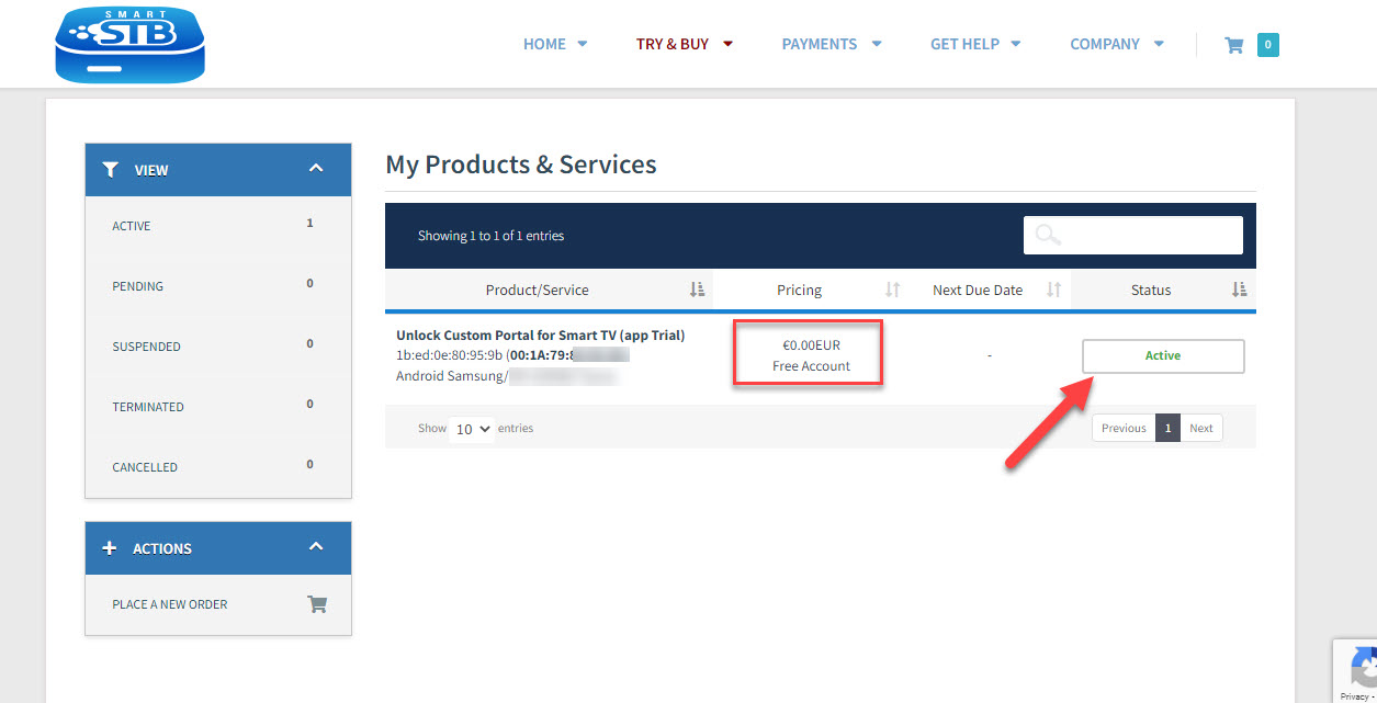 Now as you can see, the Order Status is set as Active meaning the trial period has started.